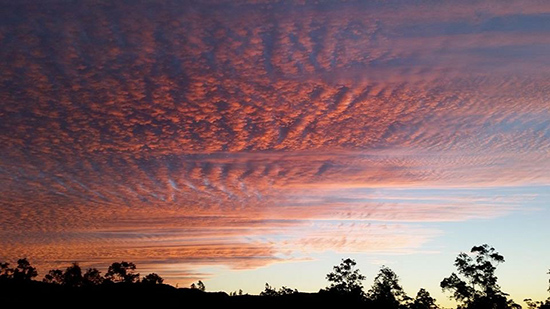 晚霞映照著獵人谷天空神奇的云朵“遮陽傘”(鉑高匯精品酒莊提供)