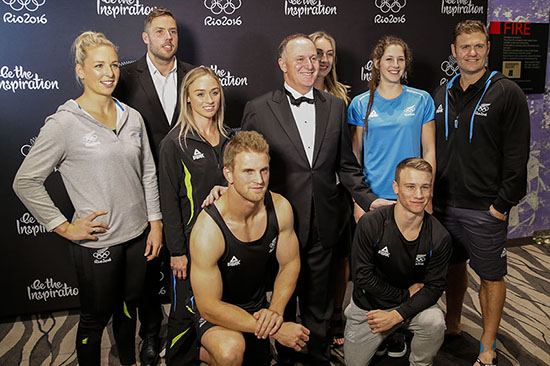 新西蘭總理約翰·基與身穿最新揭曉的新西蘭奧運代表隊服飾的運動員代表們合影(攝影 賀吉)
