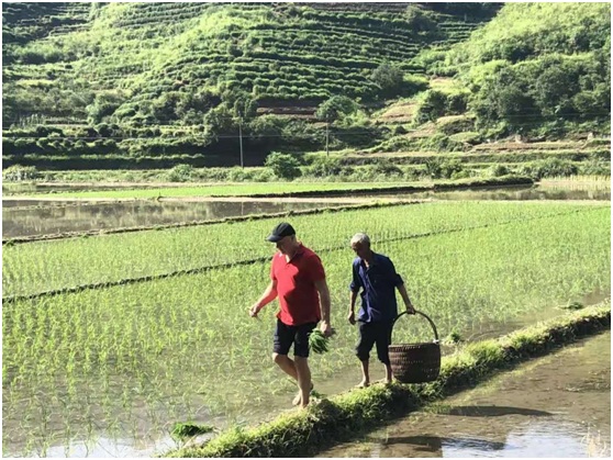大頭與中國農民一起插秧