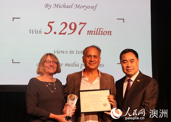 典禮現場,中國駐布里斯班總領事徐杰以及昆州代理州督、首席大法官凱瑟琳·霍姆斯為 “最具中國人氣獎”獲獎者頒獎。由于邁克爾·莫約瑟夫無法親臨現場,他的父親幫他代領了獎杯和證書。邁克爾·莫約瑟夫在接受電話采訪時說:“榮獲今年的‘最具中國人氣獎’,我感到非常激動。我迫不及待地想回到中國,繼續探索這片土地,品嘗美食,結識新朋友!