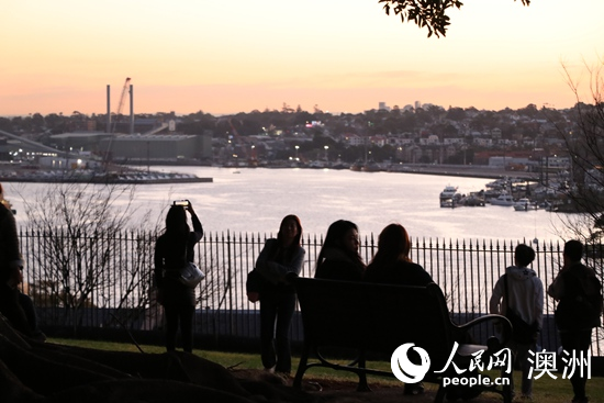 在悉尼天文臺山看到的日落景象(攝影 李曉琴)