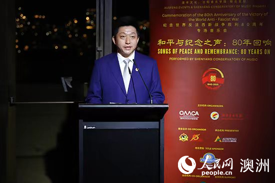 中國駐悉尼總領館副總領事王春生在活動中致辭表示,2025年是世界反法西斯戰爭勝利的80周年,本場音樂會通過藝術形式傳遞了對和平的珍視。他指出,本次音樂會既展現了中國文化的藝術魅力,也體現了中澳人民對和平與合作的共同愿望。