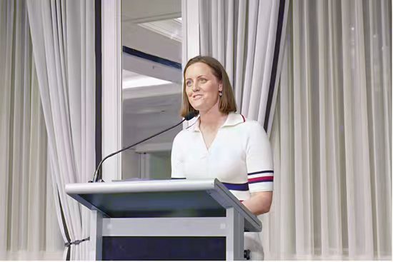 澳大利亞退役殘奧會游泳運動員、輪椅籃球運動員艾莉·維多利亞·科爾在晚宴中致辭(攝影 范恬萌)