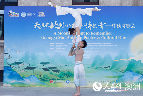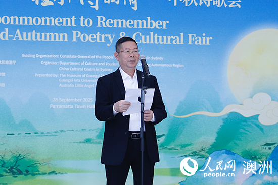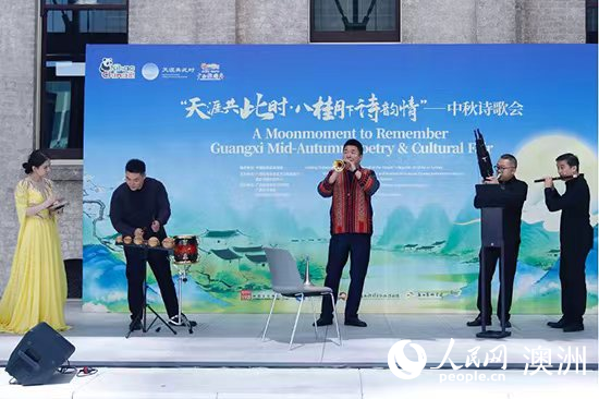 人民網悉尼9月30日電 在中秋佳節來臨之際,由悉尼中國文化中心與廣西壯族自治區文化和旅游廳主辦的“天涯共此時·八桂月下詩韻情”中秋詩歌會28日在悉尼帕拉瑪塔市政廳廣場舉行?;顒右栽姼枧c展演融合的形式弘揚中華傳統文化,吸引3000余名當地民眾前來參加。