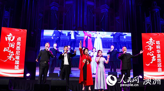 文藝匯演環節精彩紛呈。南藝原創歌曲《我愛南藝我愛寧》溫情開場,笛子獨奏、男中音演唱、京劇《貴妃醉酒》、二胡獨奏《查爾達什》等節目輪番上演,贏得陣陣掌聲。悉尼歌劇院歌唱家祁浩田的獨唱將現場氣氛推向高潮。壓軸曲目《我的祖國》由中澳藝術家深情合唱,為整場演出畫上圓滿句號。(劉美鷺)